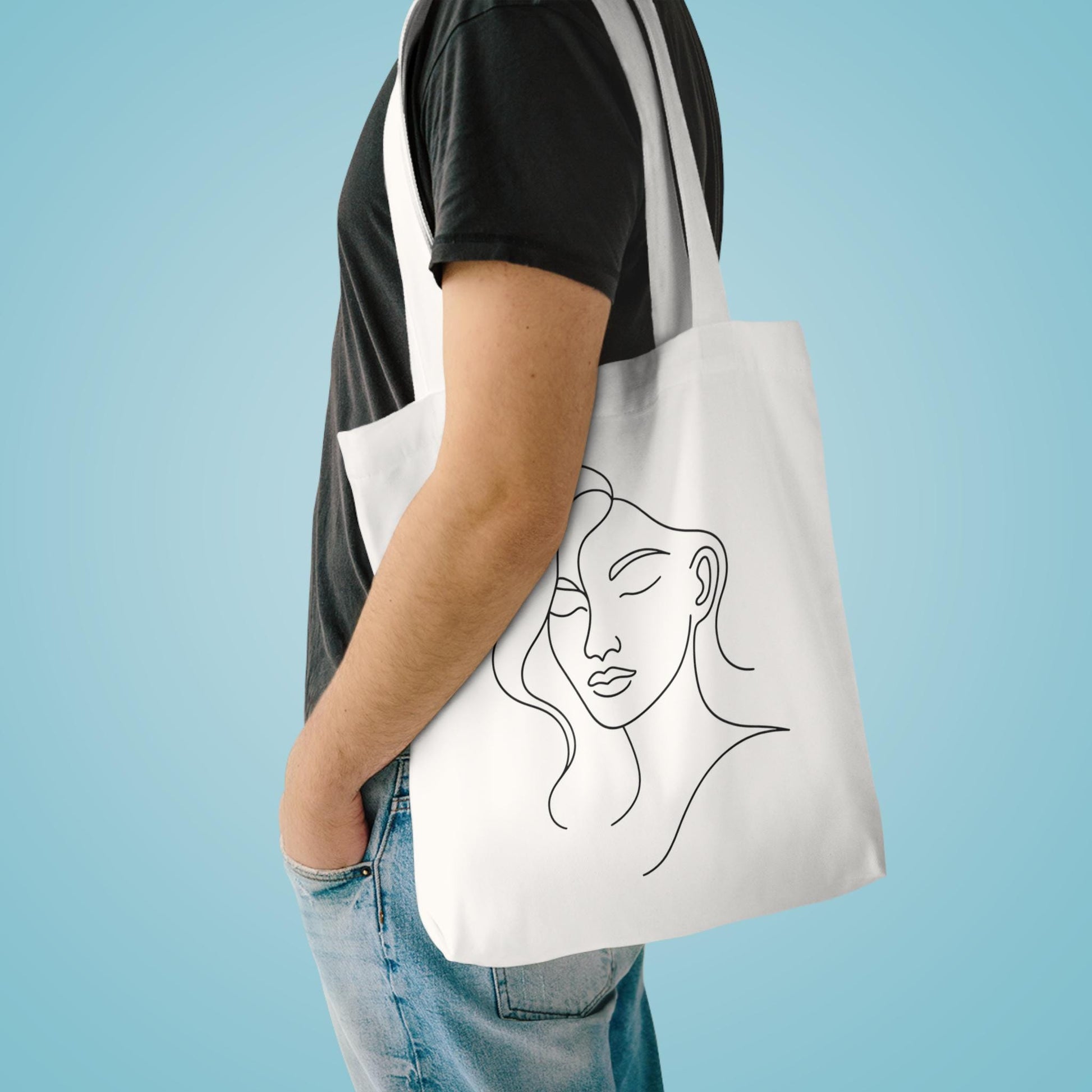 Elegant Minimalist Cotton Tote Bag, Chic Shopping Bag, Art Tote, Everyday Carryall, Eco-Friendly Gift, Black Line Art Design