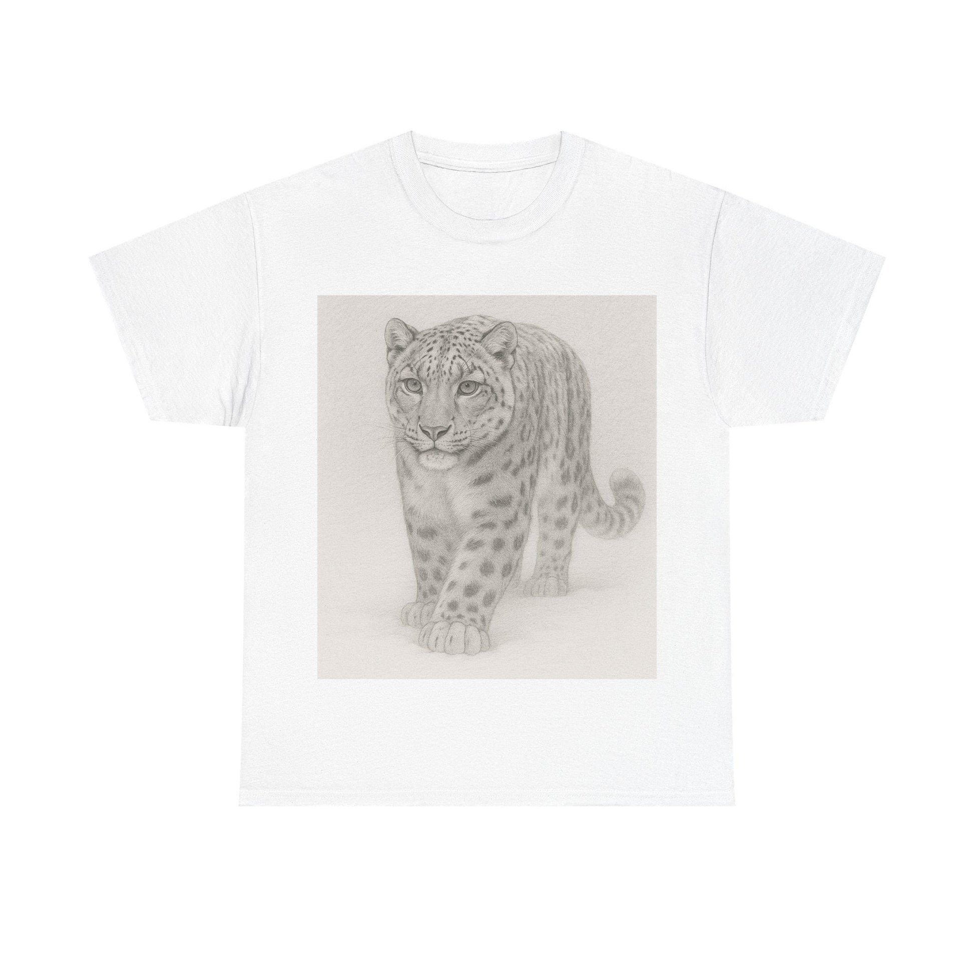 Snow Leopard Fine Line Art | Unisex Heavy Cotton Tee